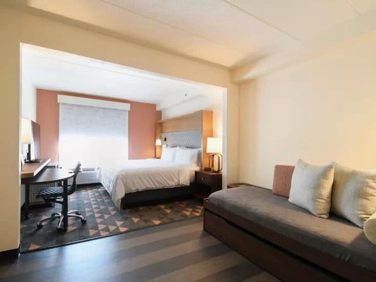 Hyatt Place Fredericksburg – Mary Washington is a top choice for golf travelers, combining modern comfort with convenience to some of Virginia\u2019s best courses. Located near Augustine Golf Club, Lee\u2019s Hill Golf Club, and The Gauntlet, the hotel offers easy access to challenging layouts with scenic views. Each course provides unique elements, from historical ties to strategic designs, making Fredericksburg a golfer\u2019s paradise. Guests enjoy spacious rooms with plush bedding, high-speed Wi-Fi, and a complimentary breakfast to start their day. The hotel also features a fitness center, indoor pool, and 24/7 Gallery Menu & Market for added convenience. Fredericksburg’s vibrant dining scene offers options like farm-to-table Southern dishes, Orofino for Italian cuisine, and Brock’s Riverside Grill with Riverfront views. With its prime location, upscale amenities, and access to golf and local attractions, Hyatt Place Fredericksburg ensures a memorable golf getaway.